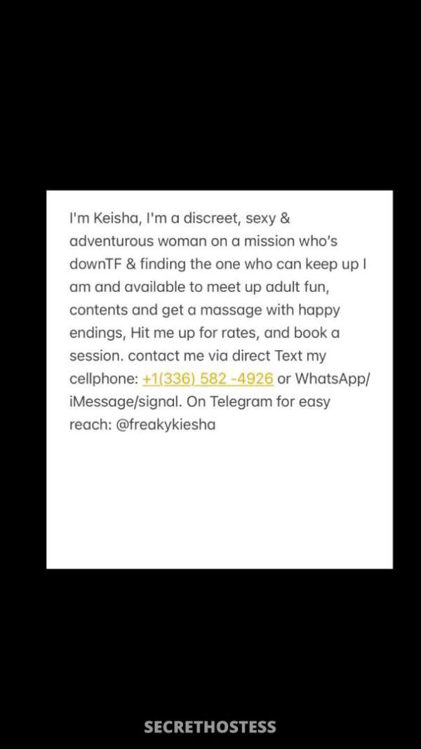 I’m available for Incall and Outcall 24/7(Sun-Sat) MON Available TUE Available WED Available THU Available FRI Available SAT Available SUN Available Text my cellphone: +1(336) 582 -4926 or WhatsApp/ +1(336) 582 -4926 iMessage/+1(336) 582 -4926 signal. Telegram for easy reach: @freakykiesha Email :[email protected]