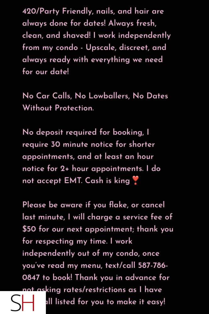 420/Party Friendly, nails, and hair are always done for dates! Always fresh, cleaned and shaved! I work independently from my condo - Upscale, discreet, and always ready with everything we need for our date