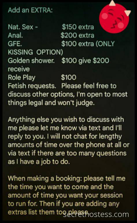 Well I have you covered, I give my best to provide the best possible service to all my clients. No I don't need to see a photo of you or your pistol. I just need you to make contact, tell me how long you're after, when you'd like to come and what you would like (basic service, exrtras etc).