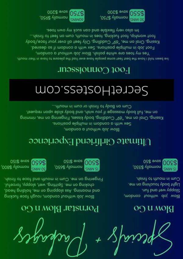 Don't be shy, come closer and let me whisper all the naughty things in your ear. Now, let's talk about the services. I know, I know, you're eager to get to the point, but I'm a patient one. we can start with the basics: a covered BJ (Blow Job with a Condom) and covered sex, both available in 15, 30, or 45-minute sessions, perfect for those with insatiable appetites.
